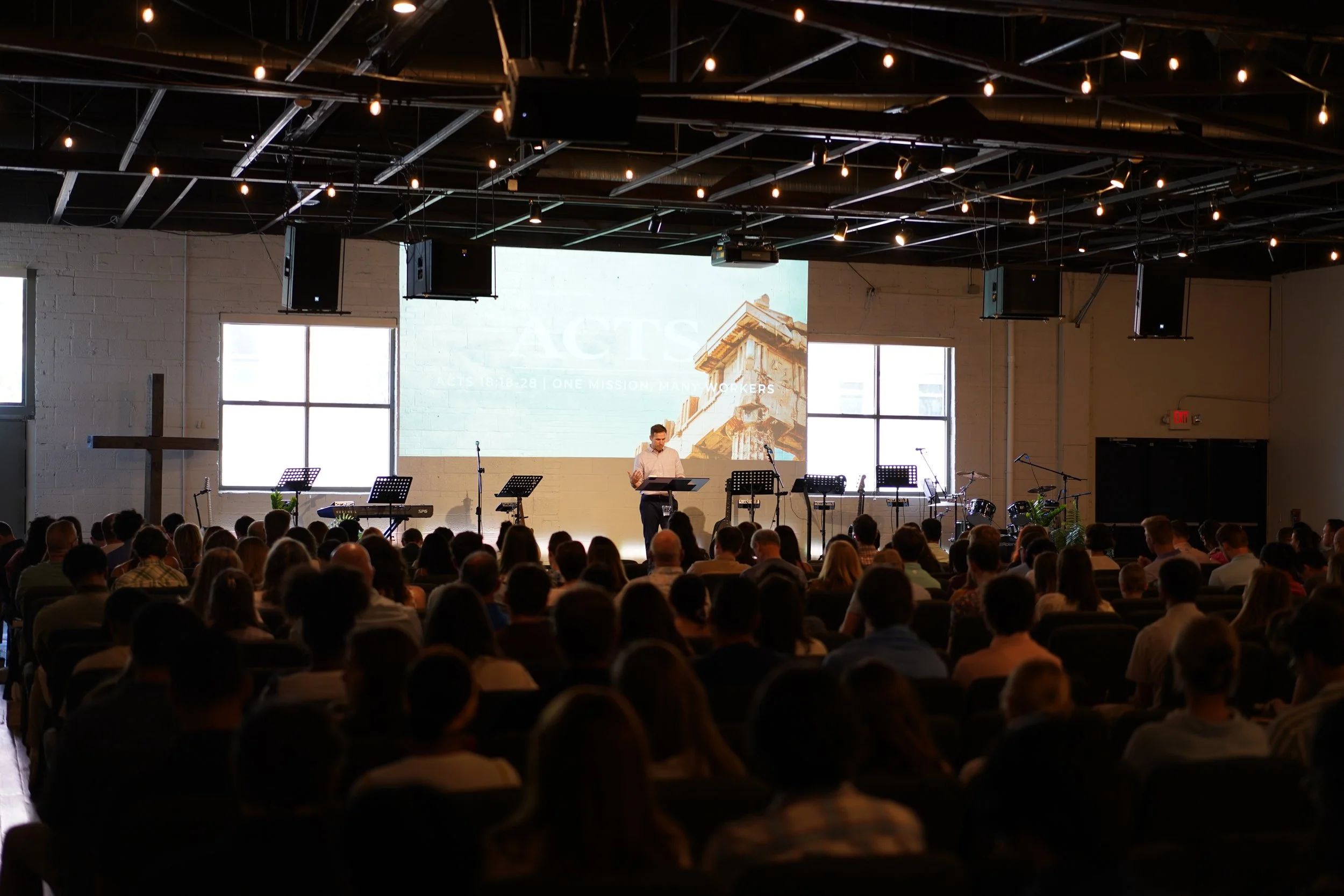 To begin the service, our worship team will play a Call to Worship song, inviting everyone to come in, find their seat, and prepare their hearts to worship. One of the pastors will then read a passage of scripture. This helps us reorient ourselves to the purpose of which we’ve gathered together on Sunday.